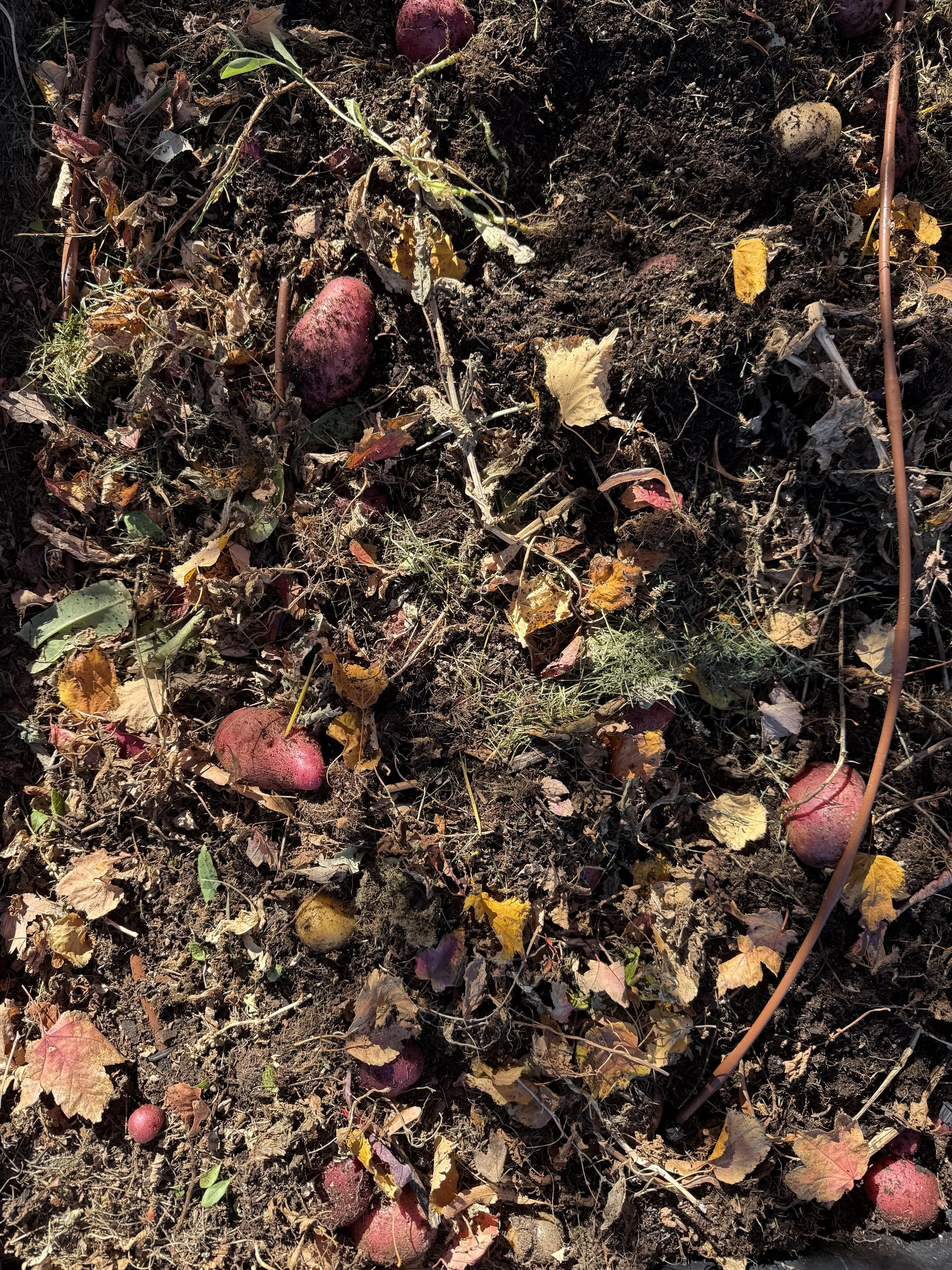 Recently, I found myself out in the garden harvesting my potatoes—a favorite task of mine because it feels like searching for buried treasure. The soil is hidden beneath a layer of greenery and plant debris, so it’s necessary to carefully move these aside to reach the earth below. At first, only a few potatoes reveal themselves on or near the surface. I gather those, but the real reward comes from digging deeper, gently turning the soil and carefully sifting through it to discover more of those delicious tubers. Occasionally, I miss a few potatoes, but that’s perfectly fine, as those left behind will become seeds for next year’s crop.