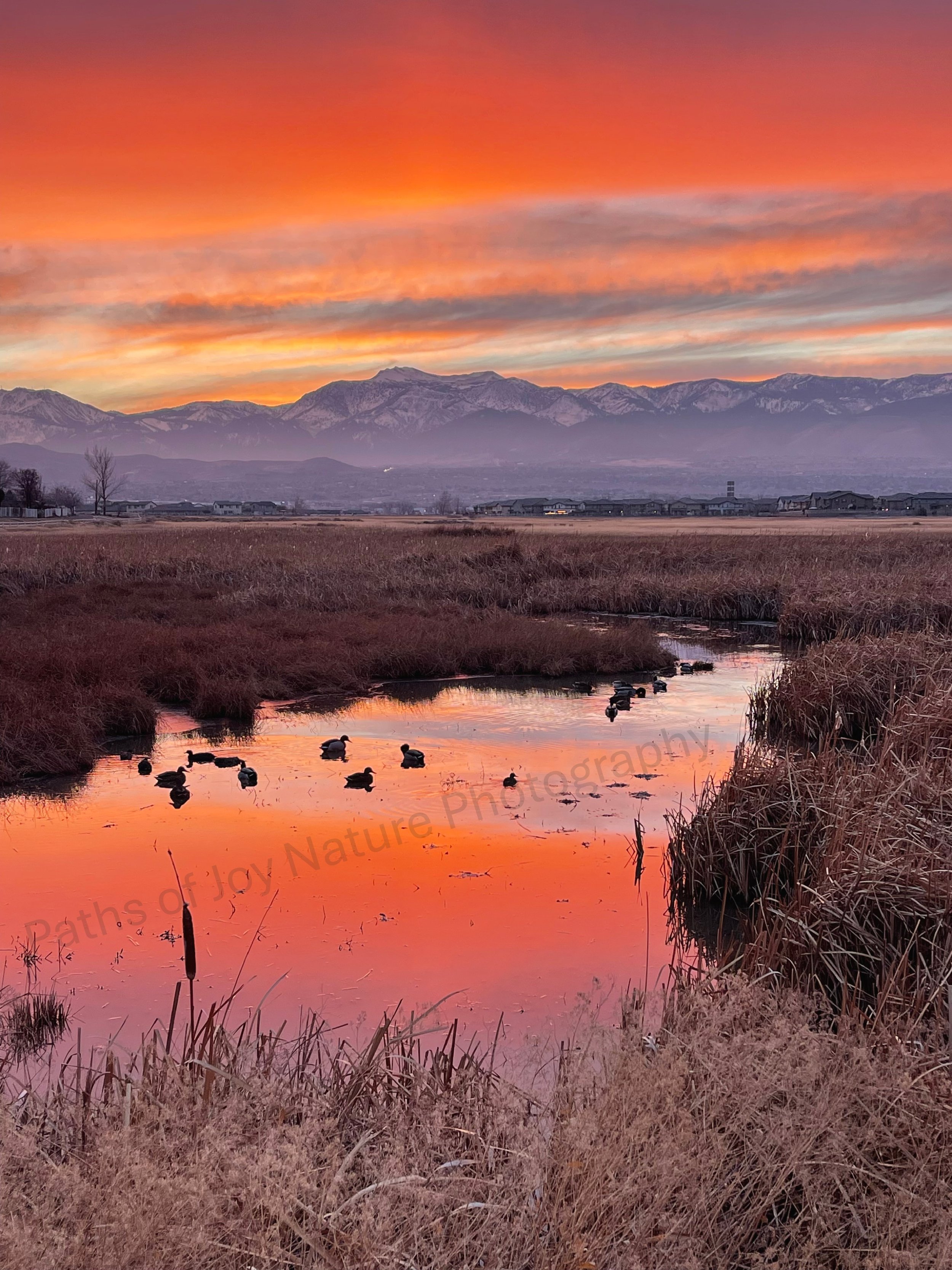 “Shared Perfection” is my favorite nature photo. It’s definitely the one that God used to provide encouragement for establishing Paths of Joy Nature Photography with Daily Inspiration blogs. It was a photo taken in December of 2024 on a nearby wetland. My pup and I walk the path around this area frequently, and there is often something new and beautiful on our walks. This December sunset was one of the most breathtaking sunsets that I had ever seen; it was perfect! Somehow, it was even more special because it was near my home. This completely unedited photo is called “Shared Perfection”, because it felt like God had shared this perfection with me so that I could share it with others. It’s the only photo that I anticipate selling as a limited edition, because it’s so significant to me. It’s the one hanging in my home, and it’s the one representing my first steps on Paths of Joy. May you also be blessed today by the beauty of “Shared Perfection”.